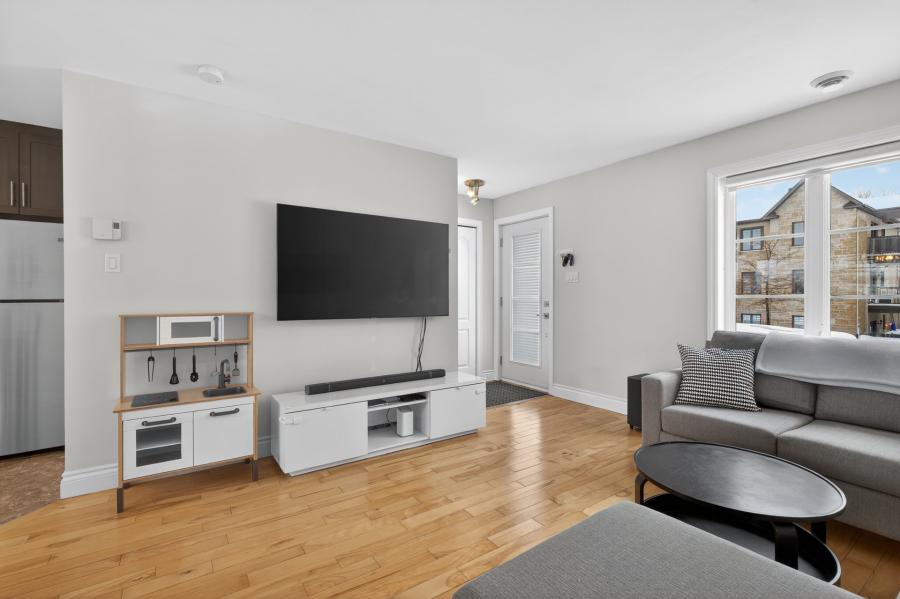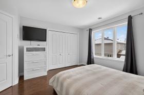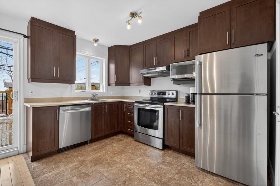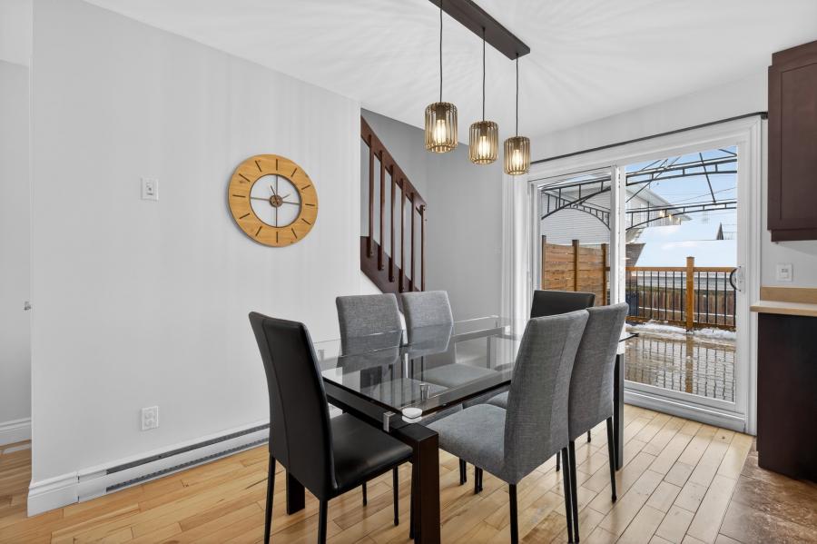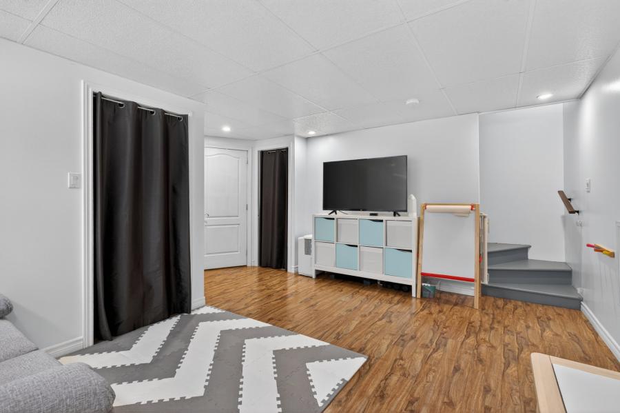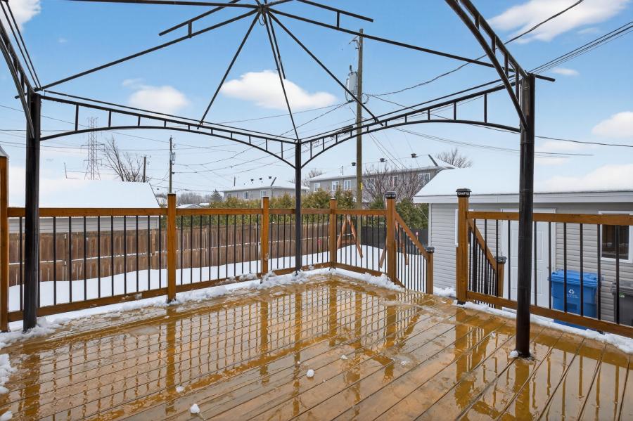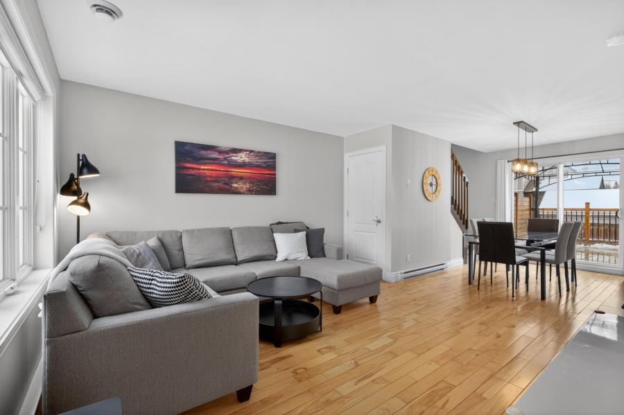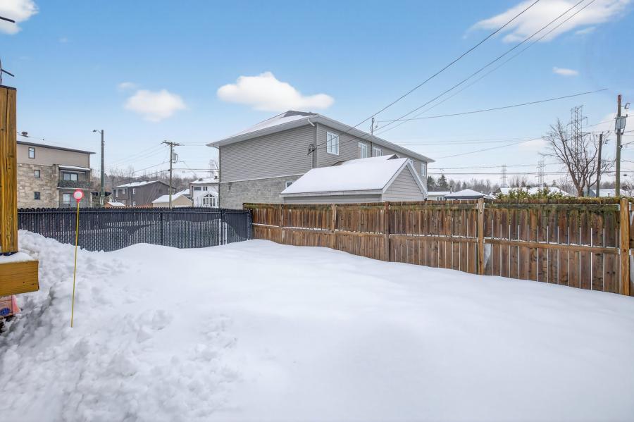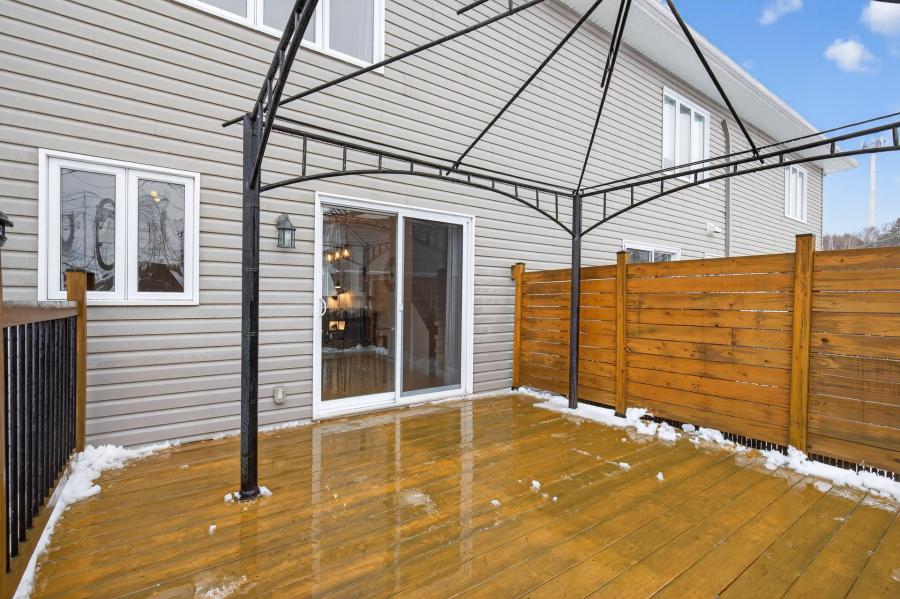 Lumineuse maison en rangée de style jumelé (unité de bout) dans un secteur familial par excellence. Directement en face du Parc de Thuyas, cette propriété dispose de 3 chambres dont deux à l'étage, deux salles de bains, une salle d'eau, une agréable aire de vie au RDC, une belle cuisine avec grand garde-manger, salle familiale au sous-sol et une thermopompe pour le confort. Profitez d'une cour extérieure ensoleillée et clôturée offrant une terrasse avec gazebo, un cabanon pratique, un foyer extérieur en pierre et 3 stationnements en tandem. Occupation flexible à partir du 29 juin 2026.