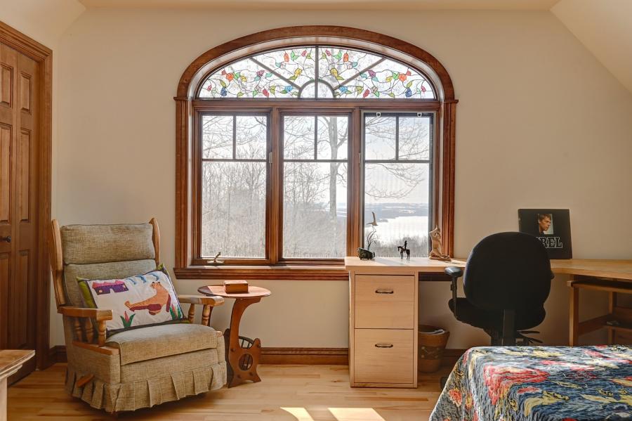 | Vitraux accroché dans les fenêtres, luminaire de la salle à manger. |