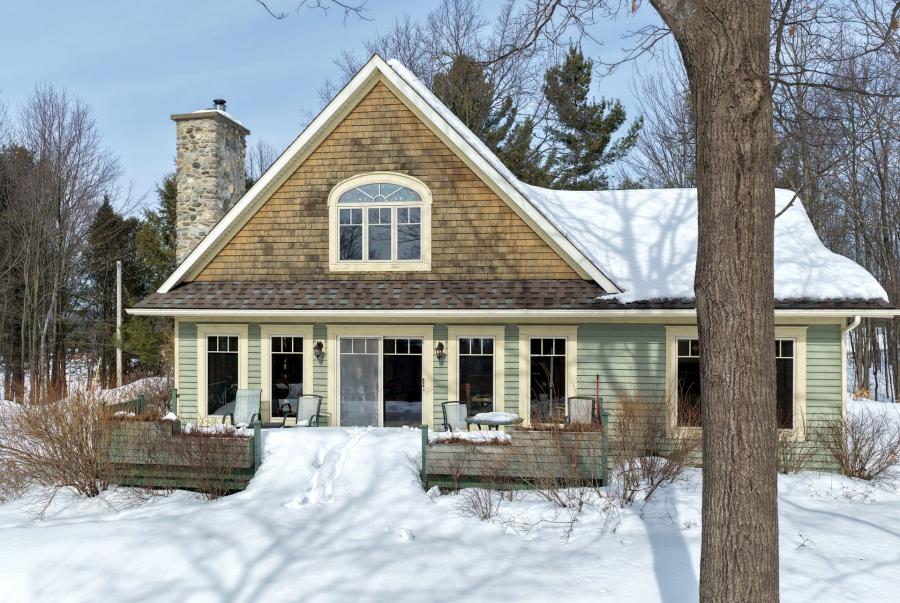 Charmant cottage de style Nouvelle-Angleterre, construit en 1999, au sommet d'une colline, offrant une vue panoramique sur le Lac Massawipi et les montagnes à l'horizon. Terrain intime et boisé de 130 000 pi² principalement composé de feuillus. Aire de vie ouverte, foyer au salon et planchers chauffants. Trois chambres et deux salles de bains. Luminosité abondante grâce aux nombreuses fenêtres. Garage indépendant, piscine hors terre. Sous-sol avec descente et entrée indépendante double pratique pour remiser vos équipements. Environnement paisible et enchanteur à proximité de North Hatley et du Mont Orford.