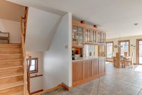 cuisine, portes intérieures, moulures et escaliers en bois.
