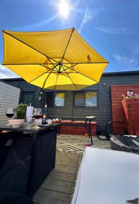 avec évier. Elle offre assez d'espace pour un BBQ, coin