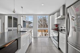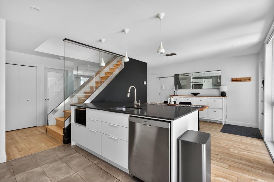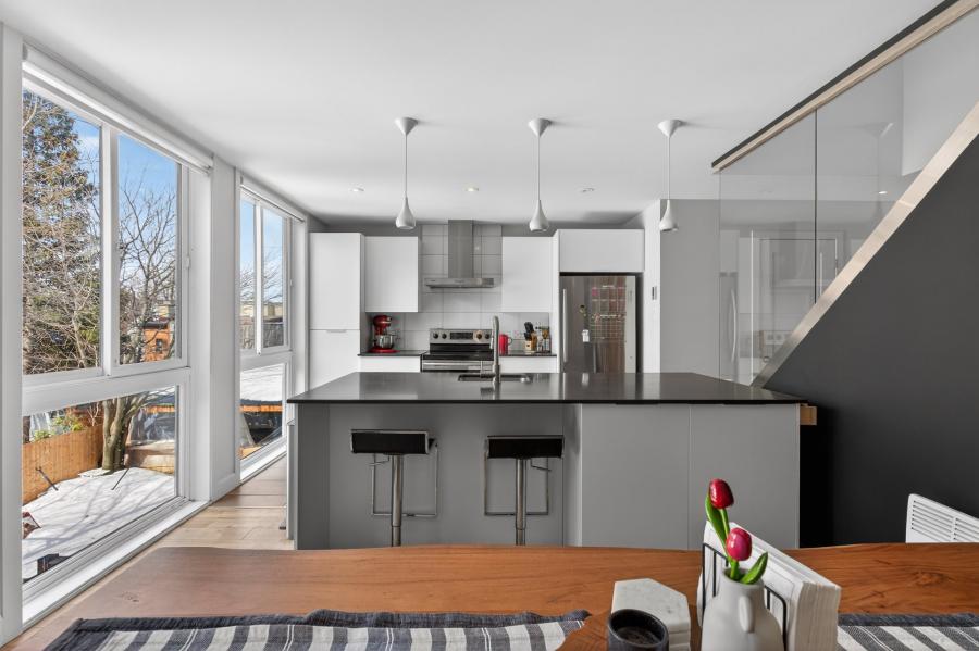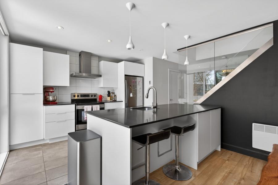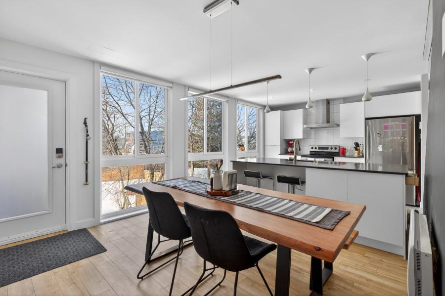 Magnifique condo 2016 situé aux deux derniers étages d'une copropriété divise de 4 unités. Vous serez séduit par sa terrasse ensoleillée à usage exclusif d'une dimension 15x20 pieds vous donnant l'espace nécessaire pour un aménagement extérieur complet. Lumineux à souhait grâce à sa fenestration abondante pleine hauteur. Cuisine et salle à manger moderne à aire ouverte, escalier avec garde-corps en verre, grand salon, 2 chambres, 1 salle de bains (douche et bain indépendants) et une salle d'eau. Disponible à l'occupation à partir du 15 juin 2026.