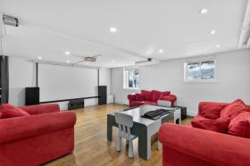 Sous-sol: Vaste salle familiale avec cinéma maison. bureau