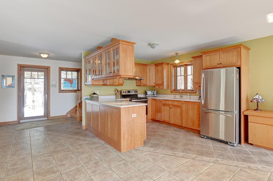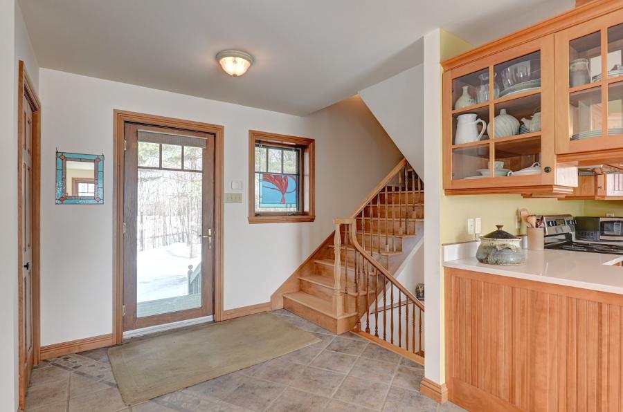 cuisine, portes intérieures, moulures et escaliers en bois.